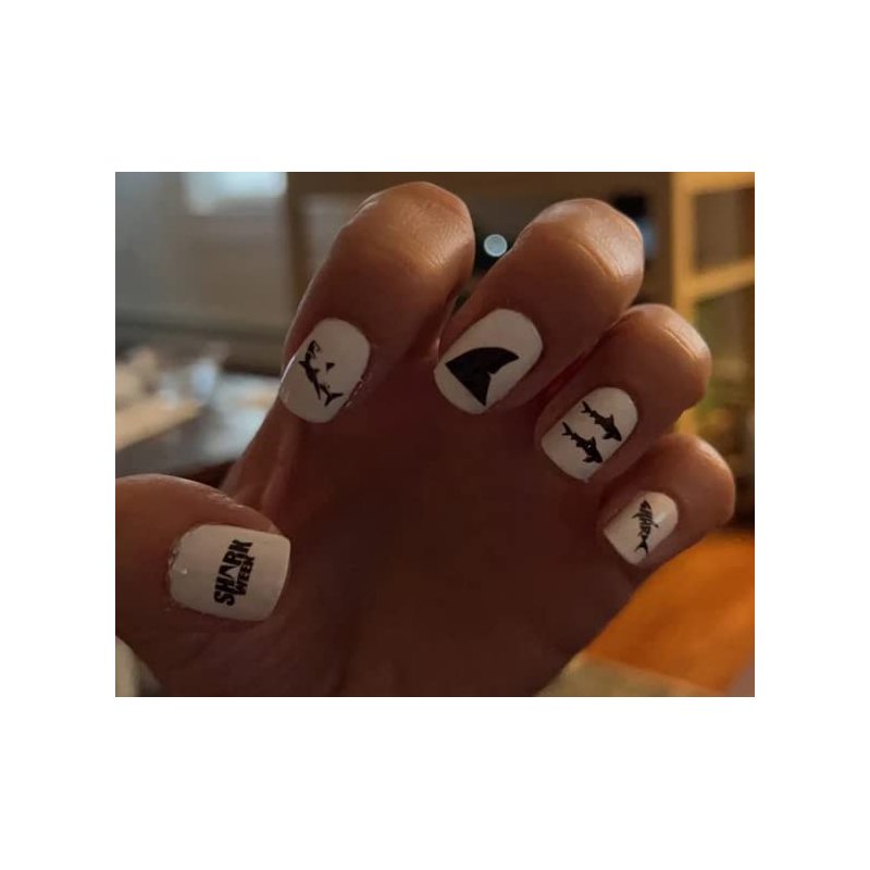 These are water-slide decals, so you just trim them, soak them in water to separate the decal from the backing paper, slide them onto your nail and then position them, then add a clear topcoat. They work best with white or lighter polish.
