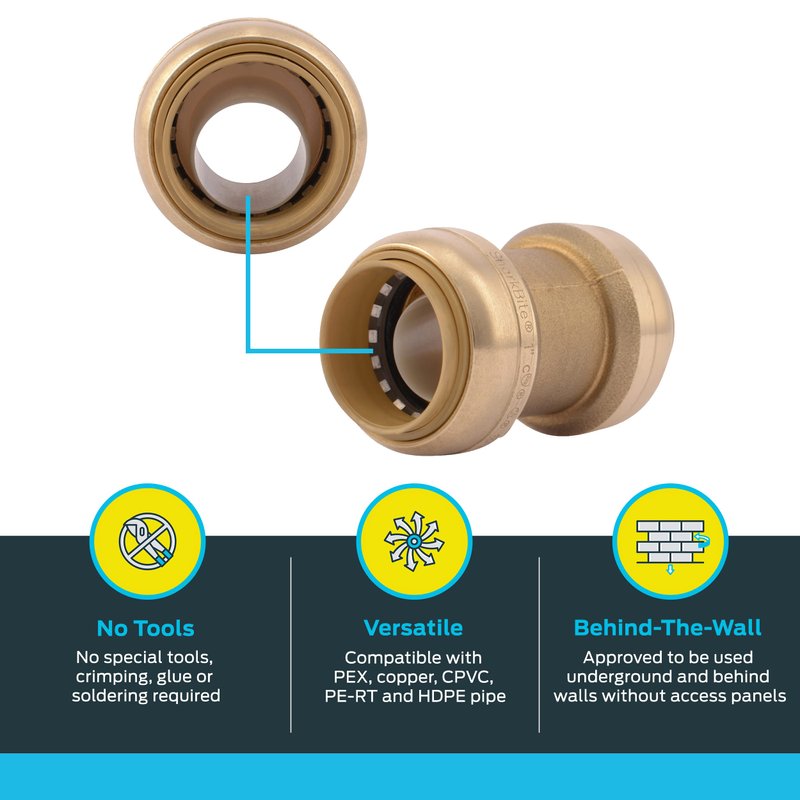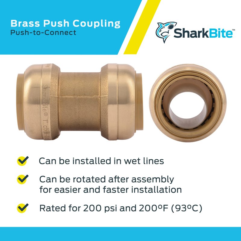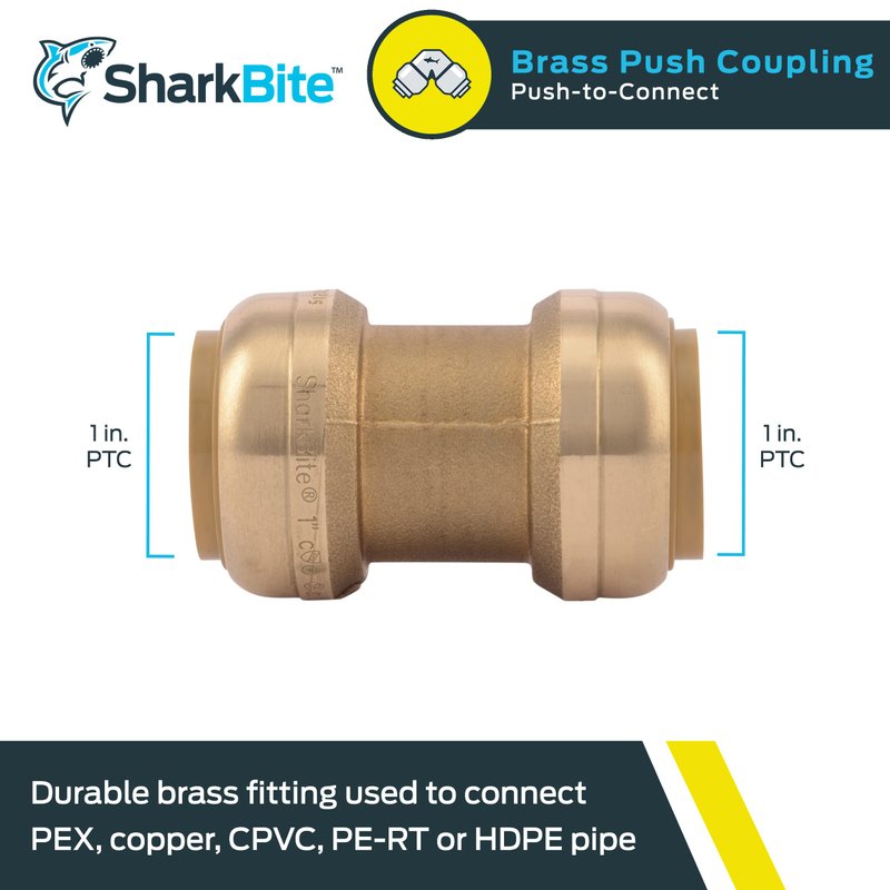 SharkBite 1 Inch Coupling, Push to Connect Brass Plumbing Fitting, PEX Pipe, Copper, CPVC, PE-RT, HDPE, U020LFA