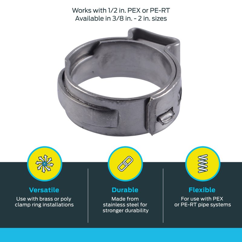 - EASY TO INSTALL: Slide the 1/2 inch clamp ring over the pipe, push the pipe onto the fitting and tighten the clamp ring using a PEX clamp tool to make a secure connection