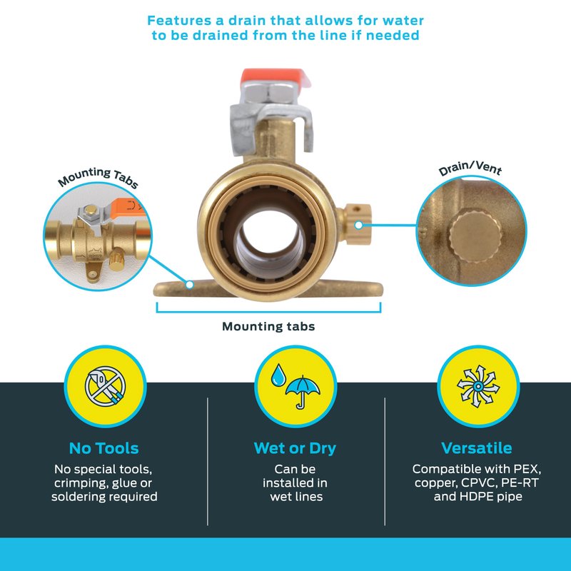 - VERSATILE: Pushfit ball valves work well with PEX, CPVC, PE-RT, SDR-9 HDPE, and copper pipes