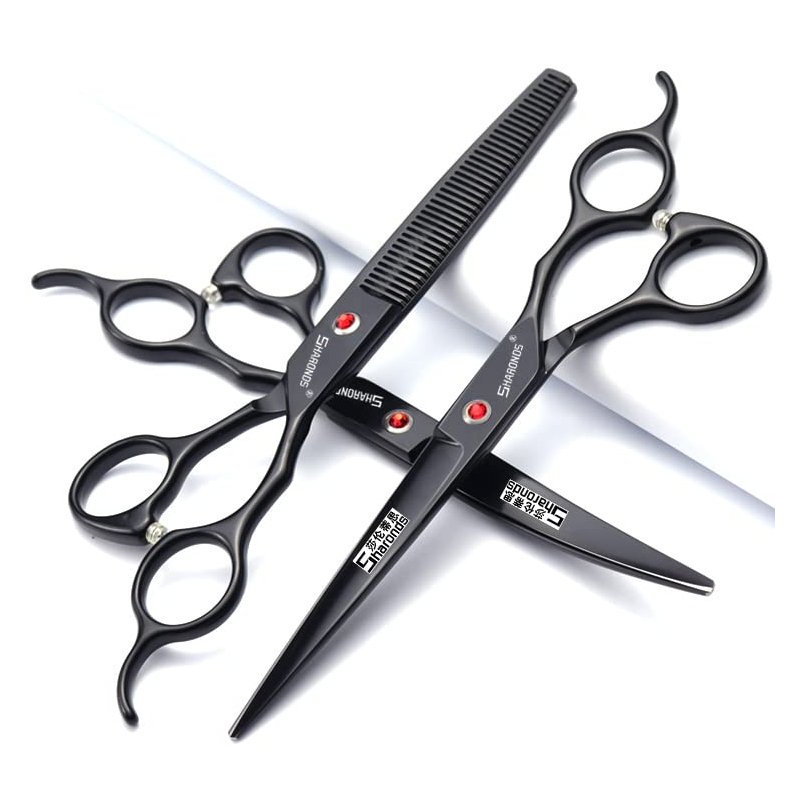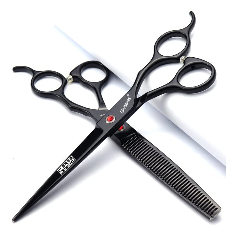 SHARONDS 6/7 Inch Professional 440C Hair Cutting Scissor Salon Hairdressing Thinning Shears Perfect for Barber and Home Use (7 in 3pc)