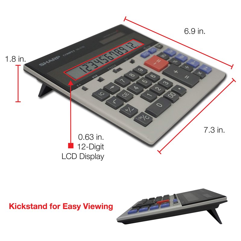 - Extra-Large 12 Digit LCD Display with Kickstand