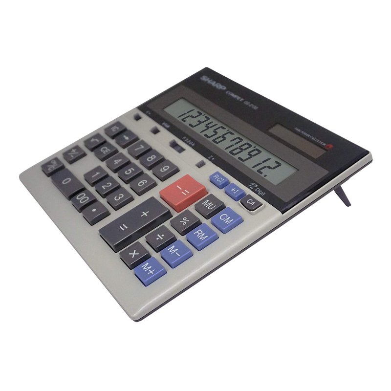 Sharp QS-2130 12-Digit Commercial Desktop Calculator with Kickstand, Arithmetic Logic, Battery and Solar Hybrid Powered LCD Display, Great For Home and Office Use,Gray and Black Small