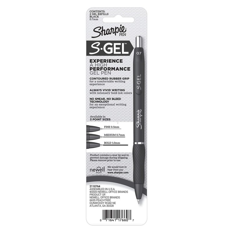 Sharpie S-Gel Refills, Black Ink Gel Pen Refills, Medium Point (0.7mm), 6 Packs of 2ct, 12 Refills Total
