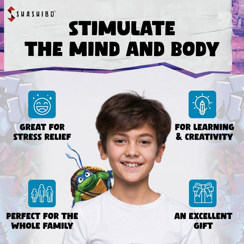 - Designed For Comfort - Shashibo means award-winning quality. The innovative design of the puzzle cube gently fits the hand for hours of mind-challenging fun! It is built of premium injection mold plastic, 36 rare earth magnets, and a tear-proof, matte surface. Covered with tons of Ninja Turtles' artistic patterns & mesmerizing artwork, for a special TMNT story in over 70 shapes.