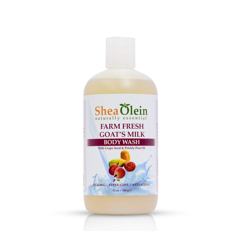 Shea Olein Organic Bath Body Wash Shower Gels (Farm Fresh Goat's Milk Body Wash W/ Grape Seed & Prickly Pear Oil, 12oz)