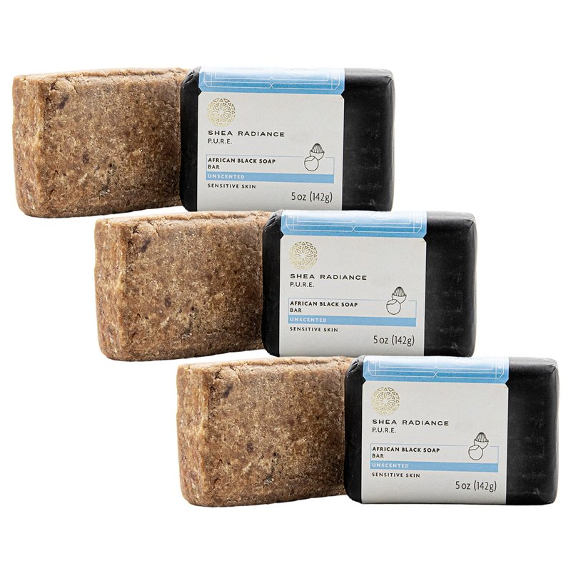 Shea Radiance African Black Soap Bar 3 Pack | Unscented