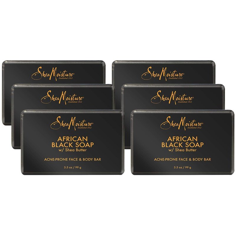 SheaMoisture African Black Soap with Shea Butter, Skin Care, Acne Prone Skin, African Black Soap Face Wash, Shea Moisture Soap, Authentic African Black Soap Bar for Face and Body (6 Pack – 3.5 Oz Ea)
