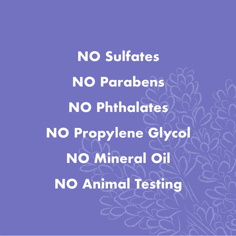 - No Sulfates, No Parabens, No Phthalates, No Propylene Glycol, No Mineral Oil, No Animal Testing, No Petroleum