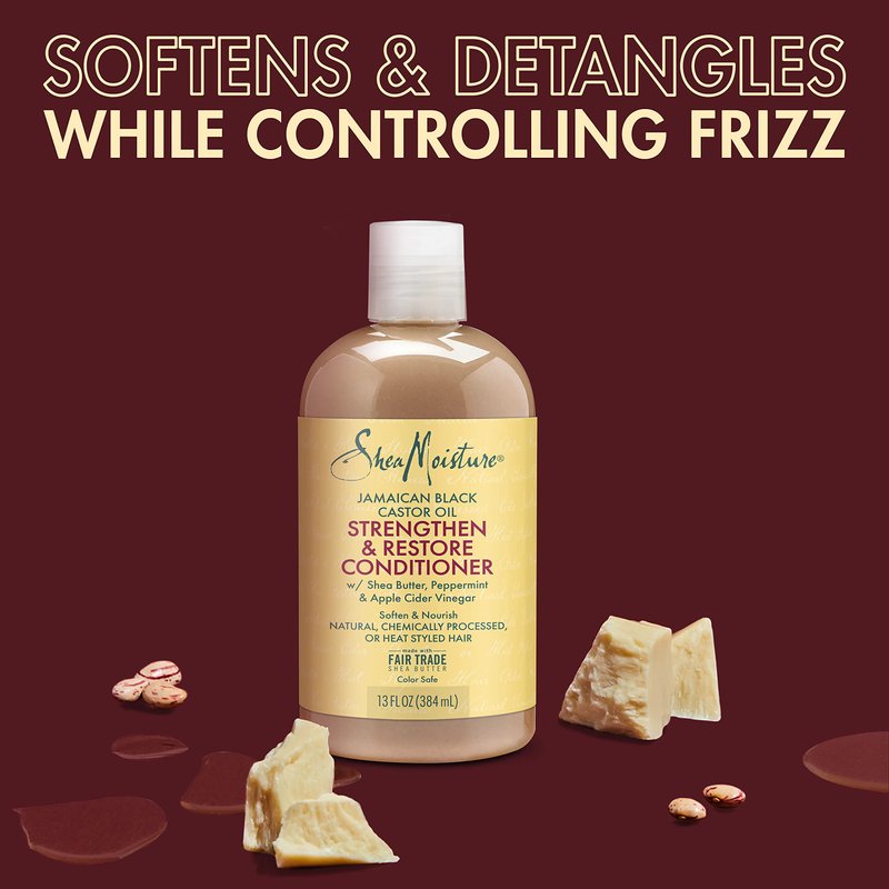 - Shea Moisture Jamaican Black Castor Oil is a reparative rinse-out hair conditioner treatment that softens and detangles hair while controlling frizz.