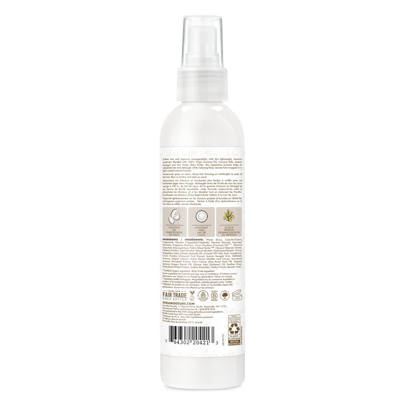 - SheaMoisture 100% Virgin Coconut Oil Leave-In is a sulfate free conditioner that softens hair and improves styling manageability.
