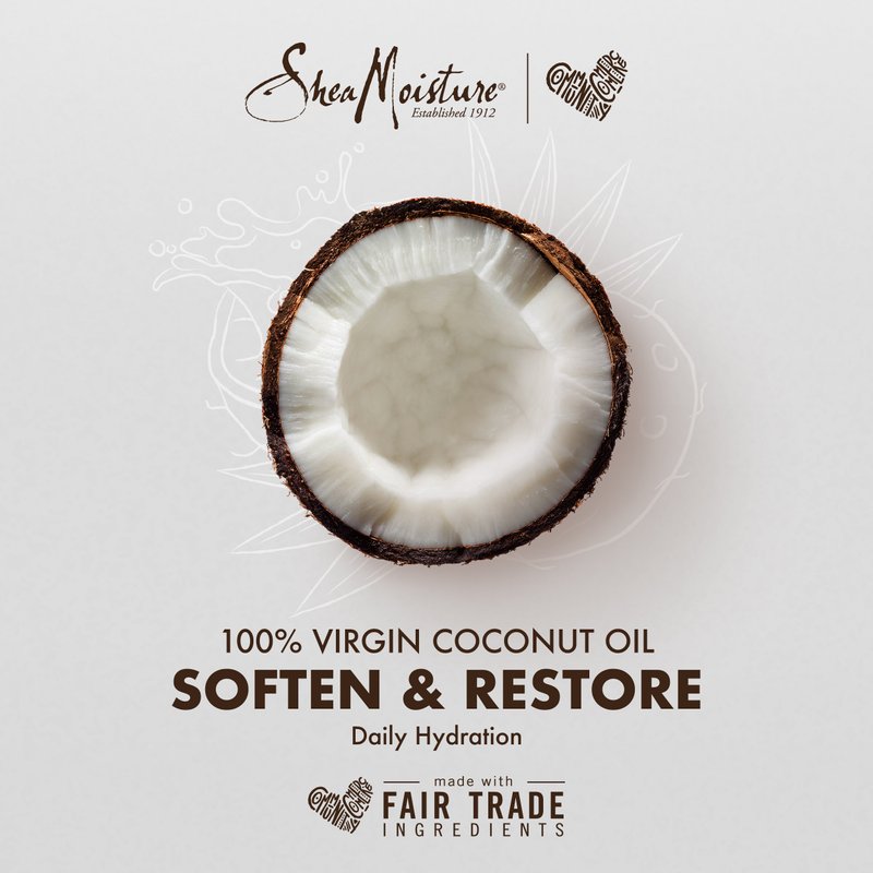 - In the SheaMoisture 100% Virgin Coconut Oil Overnight Face Oil, Fair Trade Shea Butter deeply moisturizes with vitamins and essential fatty acids.