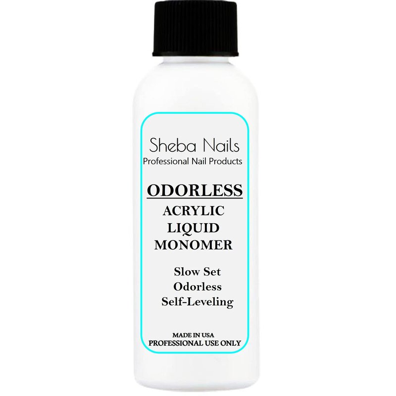 - Sheba Nails Odorless Acrylic Liquid - 2oz. bottle - Includes: Odorless Acrylic Liquid Monomer 2 ounce liquid only. Odorless Acrylic is NOT like traditional acrylic systems. Must be used with Odorless Acrylic Powder ONLY. It is a slow set formulation so can take longer to dry. Once it does dry, a tacky/sticky layer remains on the nail and must be removed. Need Help? Please feel free to contact us so we can assist you. Made in USA.