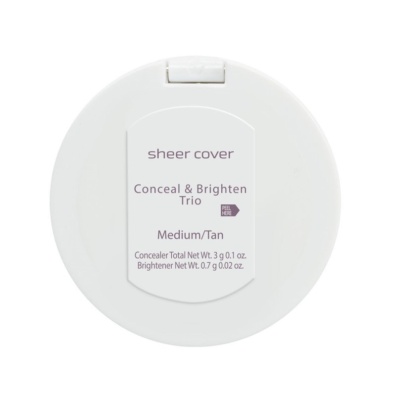 Our Sheer Cover Studio Conceal & Brighten Trio is the easiest way to instantly camouflage flaws! The handy little compact contains two concealer shades—light and dark—together with the palest shade of highlighter. Blend the concealer shades for a custom-color match to your skin tone. The lightweight cream offers total buildable coverage of your most visible imperfections—blemishes, scars, birthmarks, dark marks, spider veins, age spots, capillaries, fine lines and more—without caking, flaking or drying. Apply the Brightener—with the concealer or alone—to instantly highlight eyes or other favorite features. This sheer, creamy formula can be applied to help minimize the look of dark shadows and redness. Add it to cheekbones for an instant luminous glow.