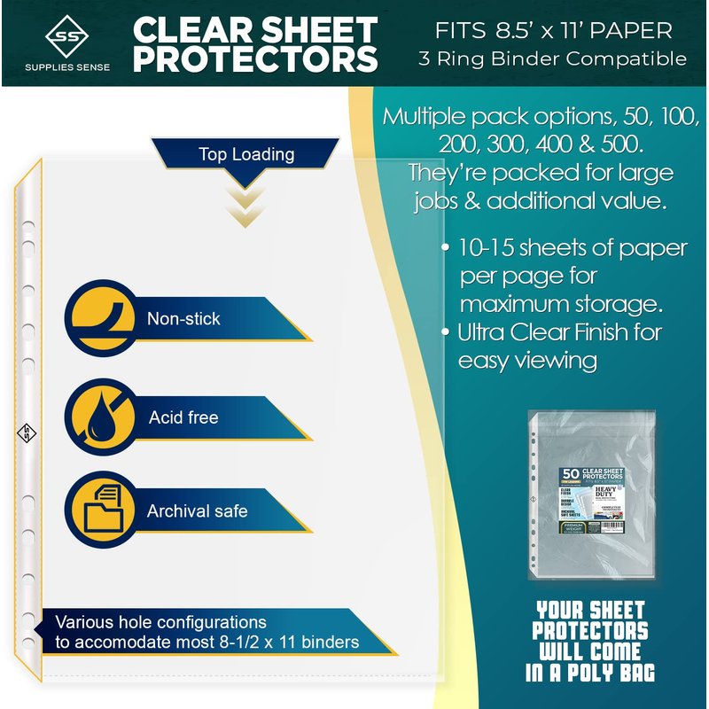 - A Simple Promise - Here at Supplies Sense, we know that thoughtful, well-crafted supplies can make all the difference at home or work. If for any reason you aren’t happy with your Sheet Protectors, don’t hesitate to reach out directly to us so we can make it right.