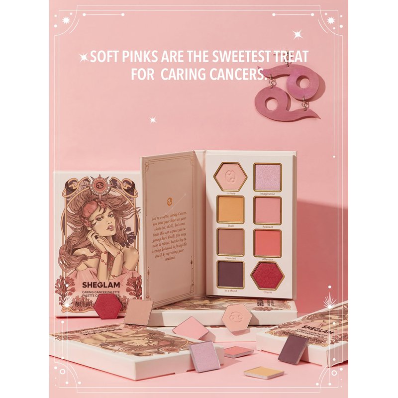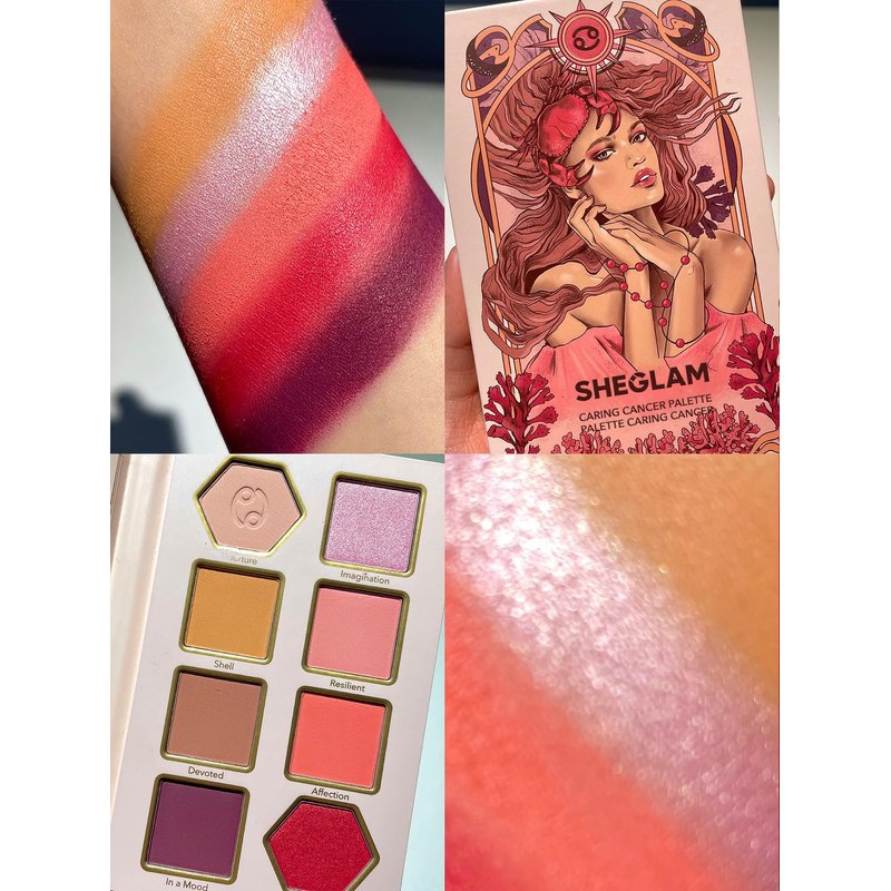 SHEGLAM Glitter Metallic Eyeshadow Palette 8-Color High Pigment Pink Dark Purple Long Wearing Horoscope Collection Eye Shadow Palette - Caring Cancer