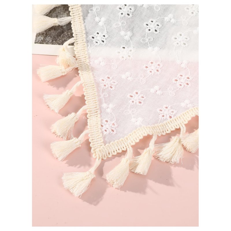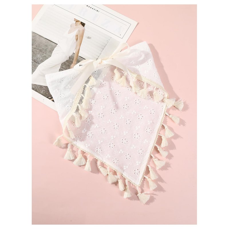 SHENHE Women's Tassel Trim Hair Scarf Headband Eyelet Fringe Triangle Bandana Kerchief White One-Size