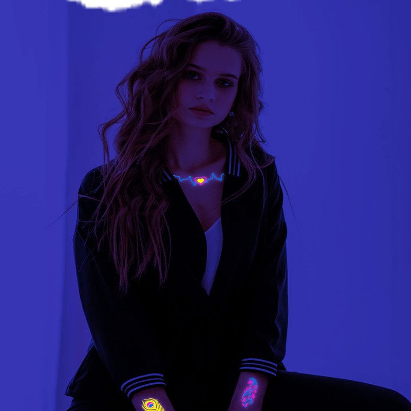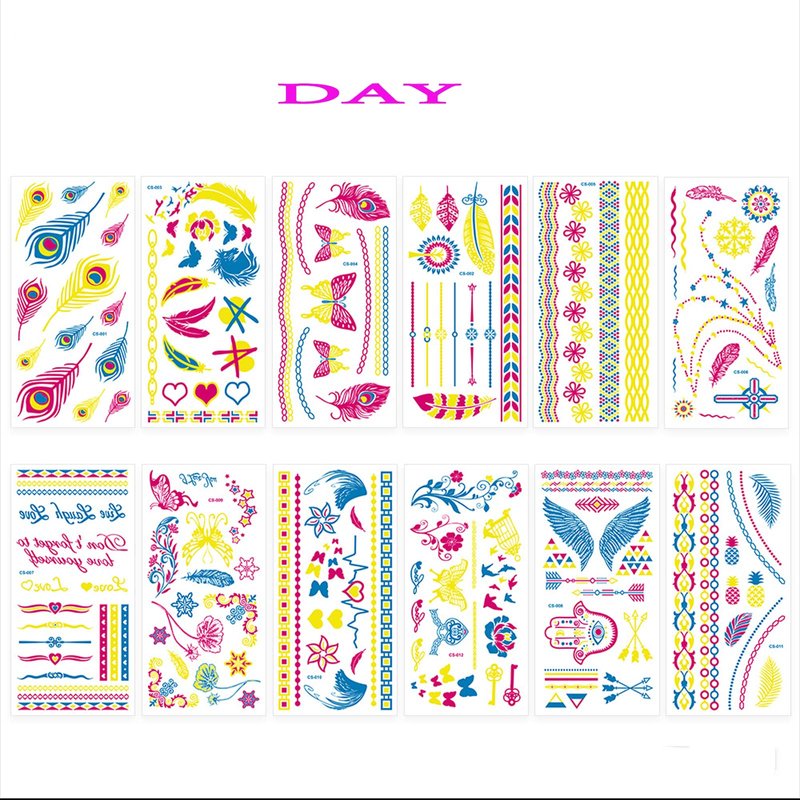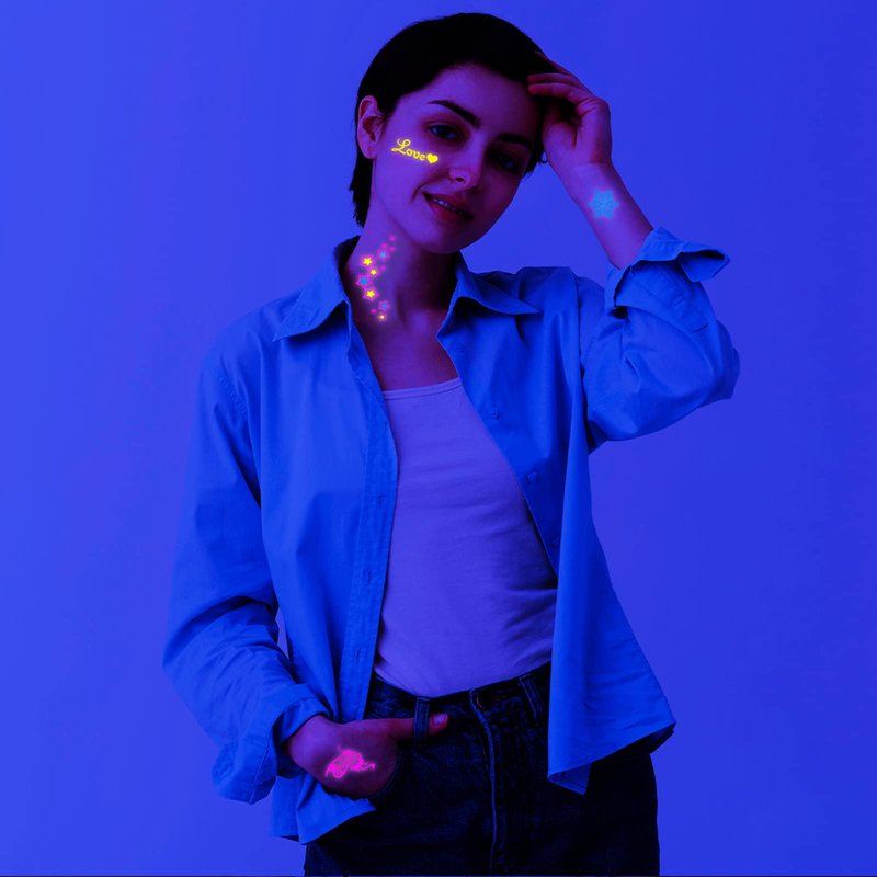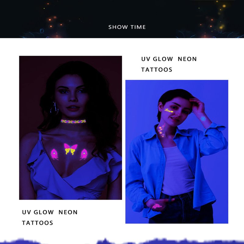UV Neon tattoo for women men kids boys girls X 12 Sheets