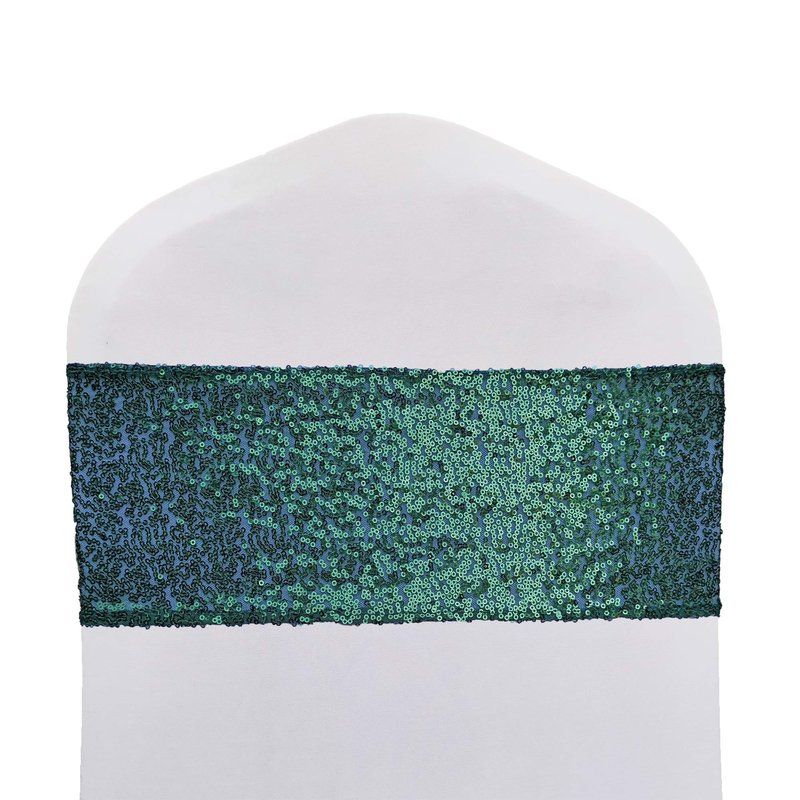 SheYang High Elastic Sequin Chair Sashes Bling Bling Chair Sashes Soft Strecth Sequin Material Shining Sequin Chair Bows for Party Decoration Home (25PCS, Dark Green)