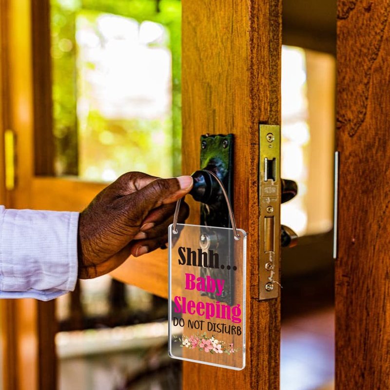 Shhh Baby Sleeping Do Not Disturb Sign, Baby Room Door Knob Hanger Sign, Used for Home, Baby Room, Nursery, Baby Shower, Party Gift for New Parent, Cute Baby Door Decoration, WAP1