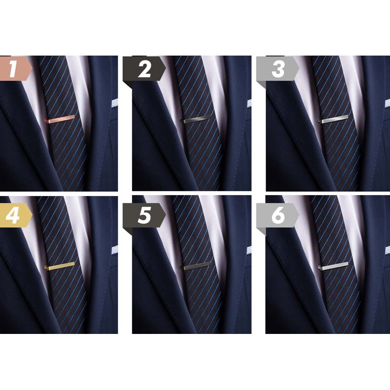 - Gorgeous Tie Clip for Men: A week's choice of 6 colors tie clips to match with tie and outfit, 3 with metallic luster, 3 are matte. These tie bars firmly hold your tie very well and also are nicely decorations on your tie, give you a business formal look.