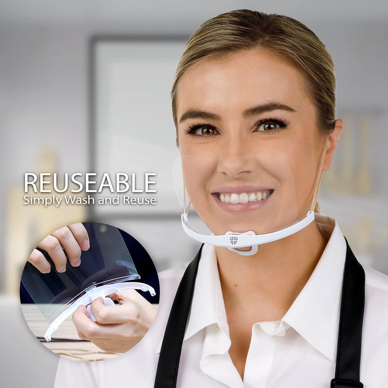 - SHIELDOFGLORY Clear Mask Face Shield Reusable 1 Set 4 Replacement Clear Face mask Shield ( 2 Cover Nose, 2 Mouth Shield) - Anti-Fog, Polycarbonate Made In KOREA Sanitary Open Face Guard for Wherever