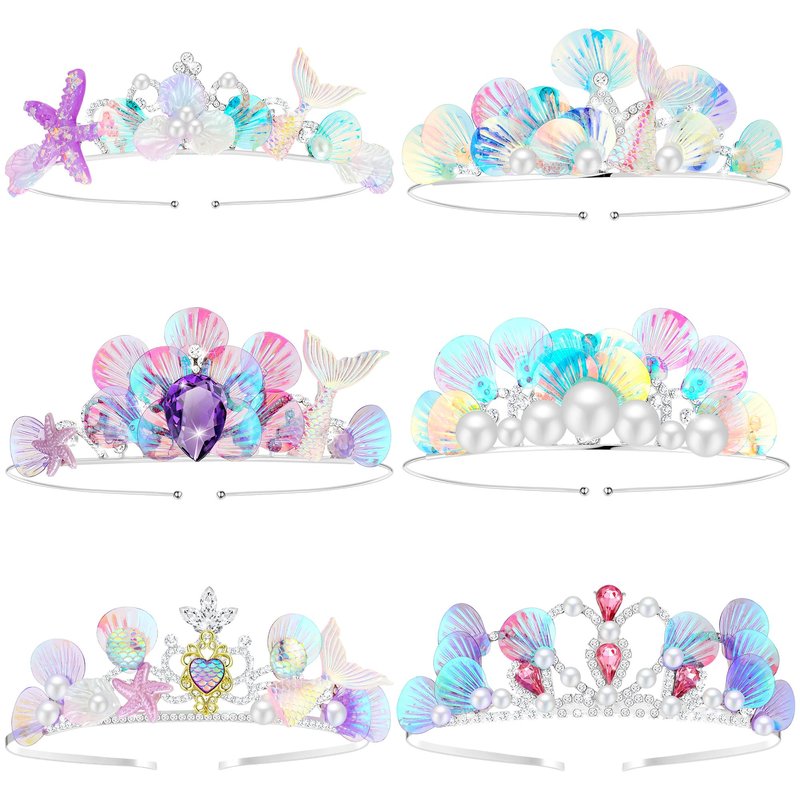 - Eye Catching Colors and Assorted Designs: each mermaid headpiece possesses an appealing blend of colors such as pink, purple, white and more; With 6 distinctively crafted styles encompassing mermaid themes like mermaid tail, seashell, pearl and starfish, these crowns serve as an ideal accessory for mermaid enthusiasts