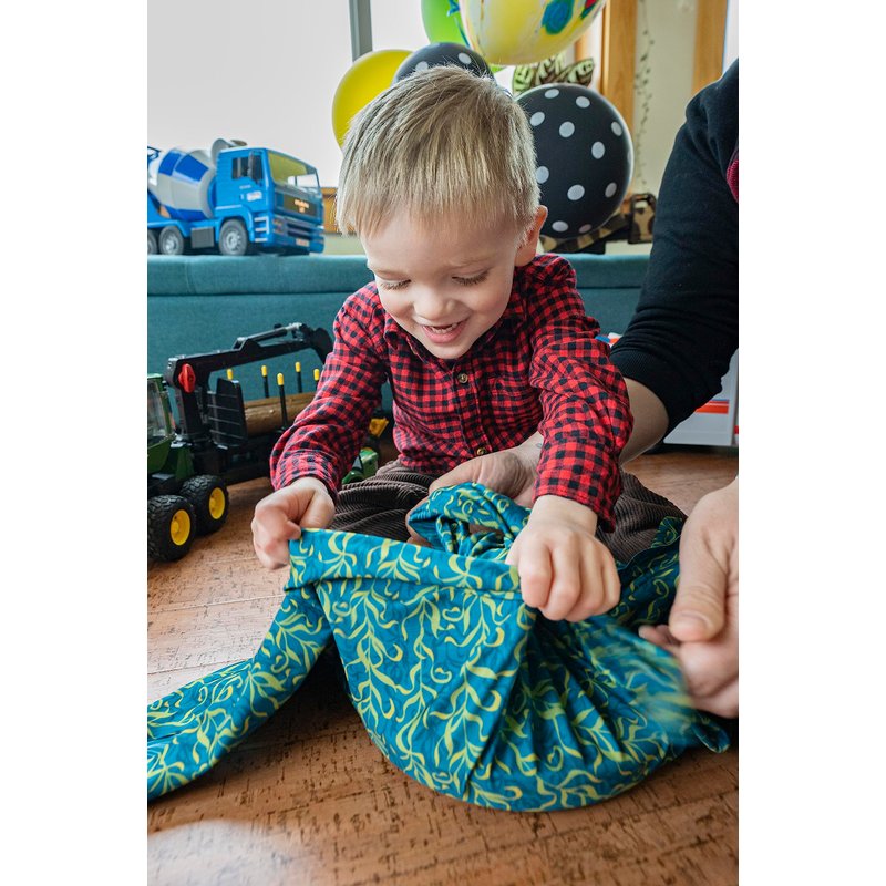 - GOOD FOR THE PLANET: In the U.S. alone, paper gift wrap requires over 27 millions of gallons of water to produce each year. If just 10% of U.S. consumers were to switch to reusable gift wrap, over 730,000 KG of carbon emissions would be eliminated annually.