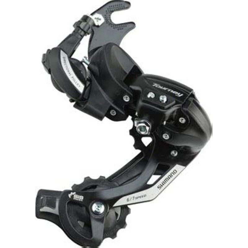 Shimano's Tourney long cage rear derailleur incorporates advanced Shimano functions and styling that sets the standard for entry level components.Includes frame hangerTY model comes with resin bracket and plate body for reduced weightZinc plated adjustment screws for corrosion resistanceMegaRange compatibleItem SpecificationsRear Derailleur Mount TypeDropout Claw HangerCage LengthLongDrivetrain Speeds6Rear Der/Shifter CompatibilityShimano MountainDrivetrain Speeds7Chain Wrap Capacity (teeth)43ColorBlackLargest Cog34keyword searchReplaces rd8164 2009923(044-039)4/13
