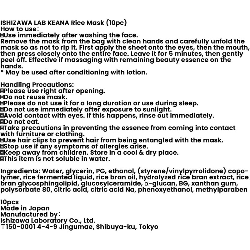 SHIMANY Ishizawa Keana Nadeshiko Rice Mask. Rice Serum Moisturizing. Hydrating Face Mask for Smoothing Skin and Reducing Pores.Pack of 2 (Total of 20 masks)