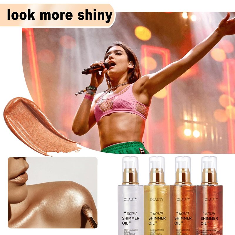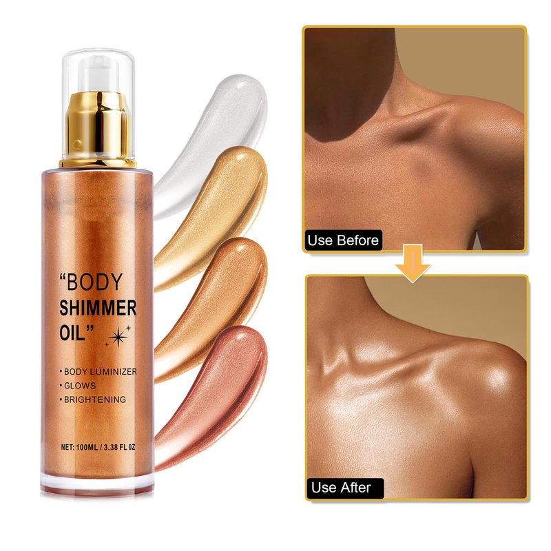 - 【Natural ingredients】 Body Shimmer Oil adopts a moisturizing formula and is light in texture, without cakes or precipitation into fine lines or wrinkles.
