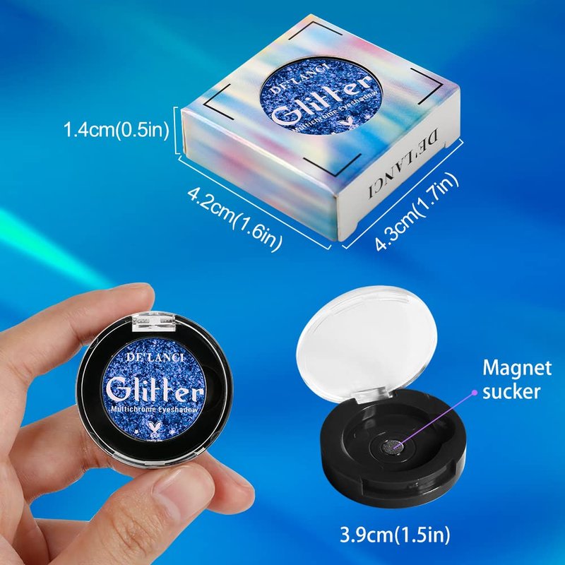 - 【Gorgeous Metallic Eyeshadow】:Duochrome makeup makes use of distinct colors to create a changeable look. Multichrome Eyeshadow will shifts to be shimmer glitter blue and purpul colors when viewed at different angles. Regular shadow,even if it's quite dimensional or has multicolored glitter,can't fully flip to another color.But metamorph eyeshadow can meet you need .