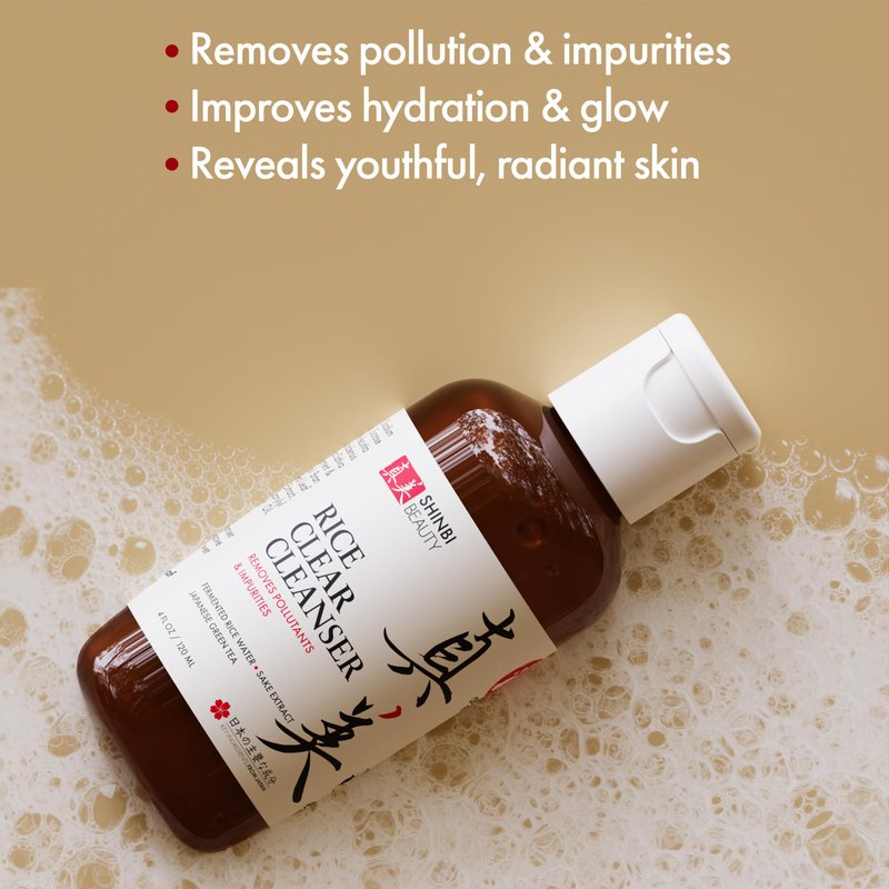 Our Japanese skin care products are rooted deep in Japanese beauty tradition. This unique Japanese cleanser infuses the purity of fermented rice water, potent sake extract, and the powerful antioxidants of Japanese green tea extract. Discover a facial rice water cleanser that's 99% naturally derived and includes age-old ingredients that have been trusted in Asian skincare regimens for centuries. This green tea face wash removes impurities and pollution without stripping yoru skin of its natural sebum. The combination of ingredients will elevate your cleansing routine, and discover what it means to have skin that reflects that healthy, youthful glow of Japanese women. Shinbi Japanese beauty products are always 100% cruetly free.