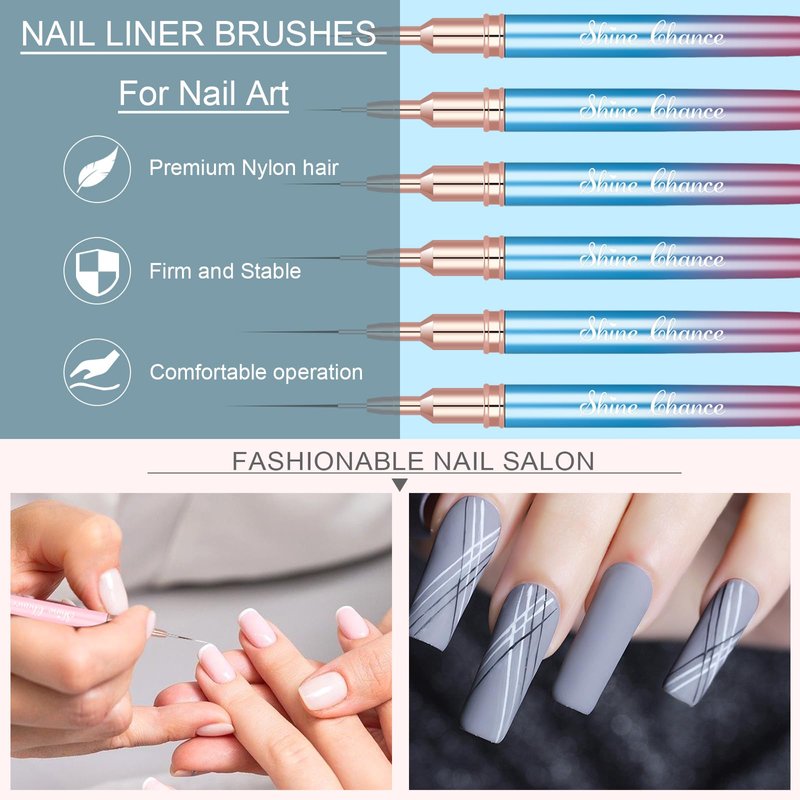 - 💗【Multi-functional】:Gel liner nail art brushes are easy to operate and can meet your various nail art and design needs, such as drawing lines, drawing delicate patterns, painting flowers, drawing checkered patterns, small details, filling in colors, marbling, swirling, blending, short strokes, etc. Not only for nail painting, but also for eyeliner and face painting, don't let your imagination stop you!