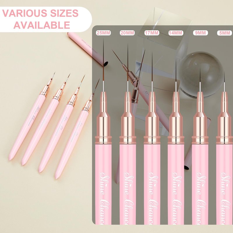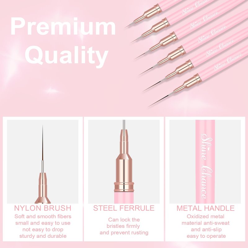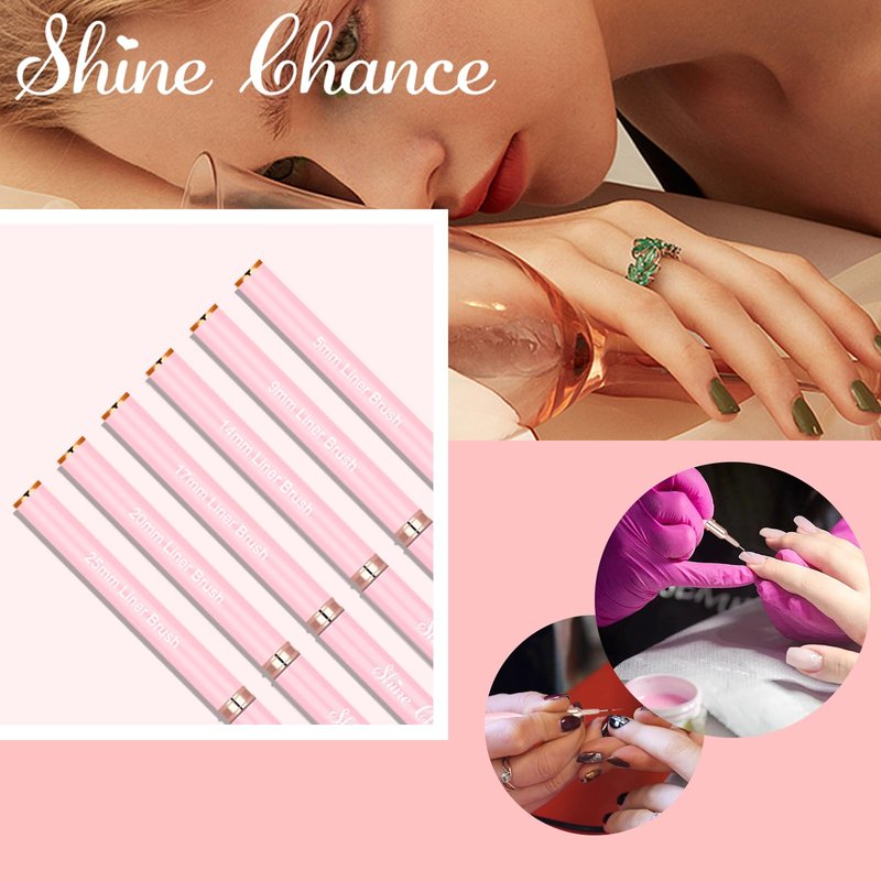 Shince Chance Nail Art Liner Brushes Set, 6Pcs Nail Art Design Brush Pen for Gel Polish Fine Drawing, Small Details Stripping Painting Nail Painting Pens, Acrylic Nail Art Design Tools, Pink