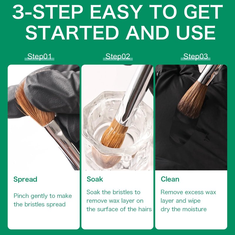 - 【Warm Tips】: Soak the acrylic nail brush in hot water (above 176 °F) for a minute to wash off the sealing wax on the surface in the first use. To lengthen the lifetime of these acrylic brushes, please clean the nail brush immediately after each use to prevent hardening. Wait it dry, cap the cap on to protect the nail brush bristles.