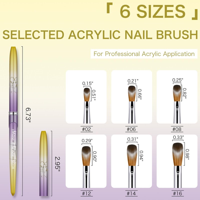 Shine Chance 6Pcs Acrylic Nail Brushes Set, Kolinsky Acrylic Nail Art Brush, Art Design & Polish Mistake Cleaning Manicure Tools for Women Acrylic Application (Size 2 6 8 12 14 16)
