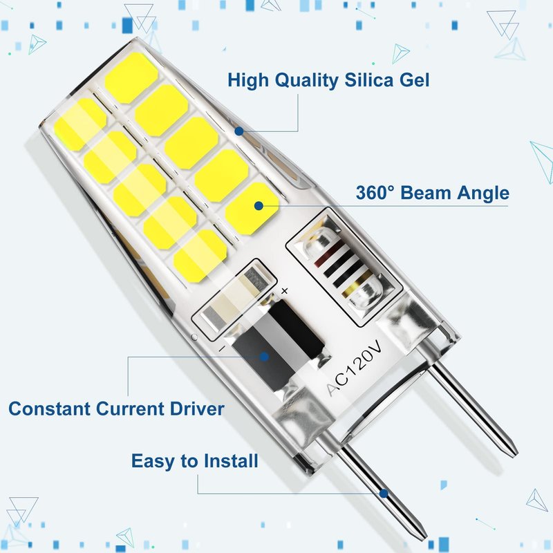 - 【Wide Application】 Bi-pin led light bulb is suitable for under cabinet lighting, microwave oven lighting, pendant lights, and fits perfectly in any standard G8 base.