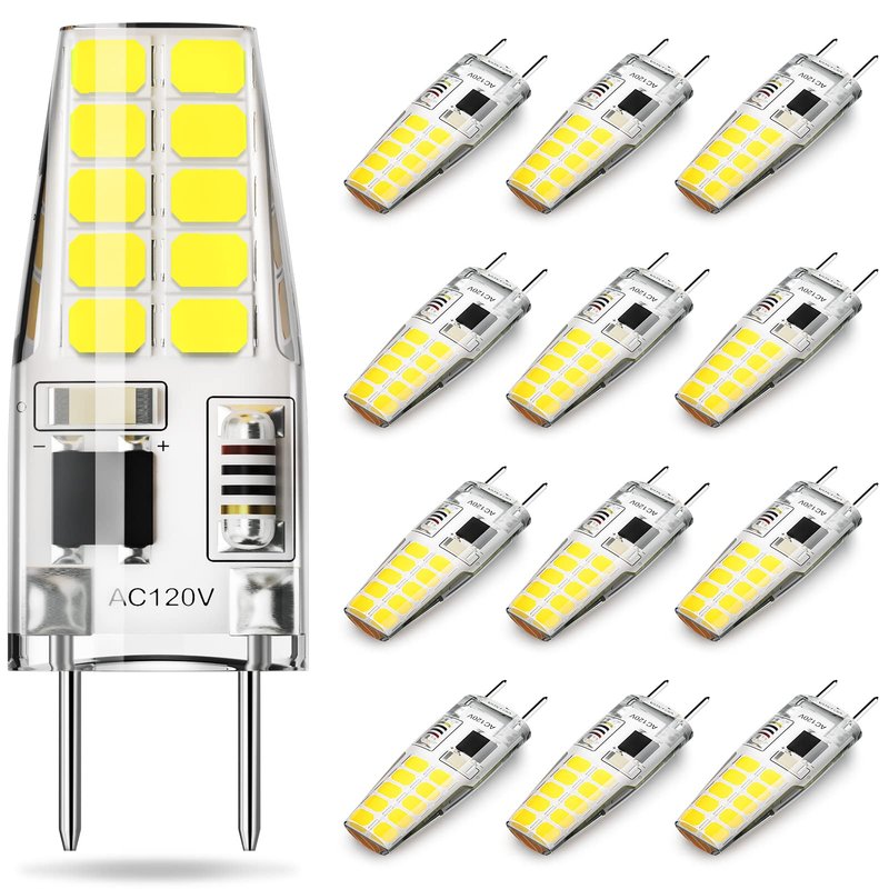 SHINESTAR 12-Pack G8 Led Bulb Dimmable, 120V T4 Bulb 20w, Daylight White 6000K, Under Cabinet Light Bulb