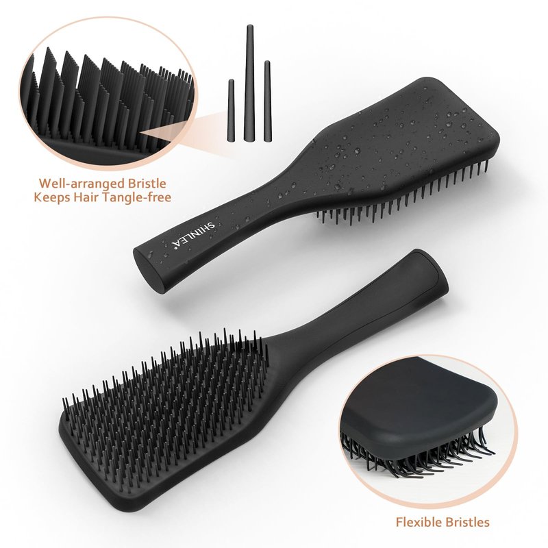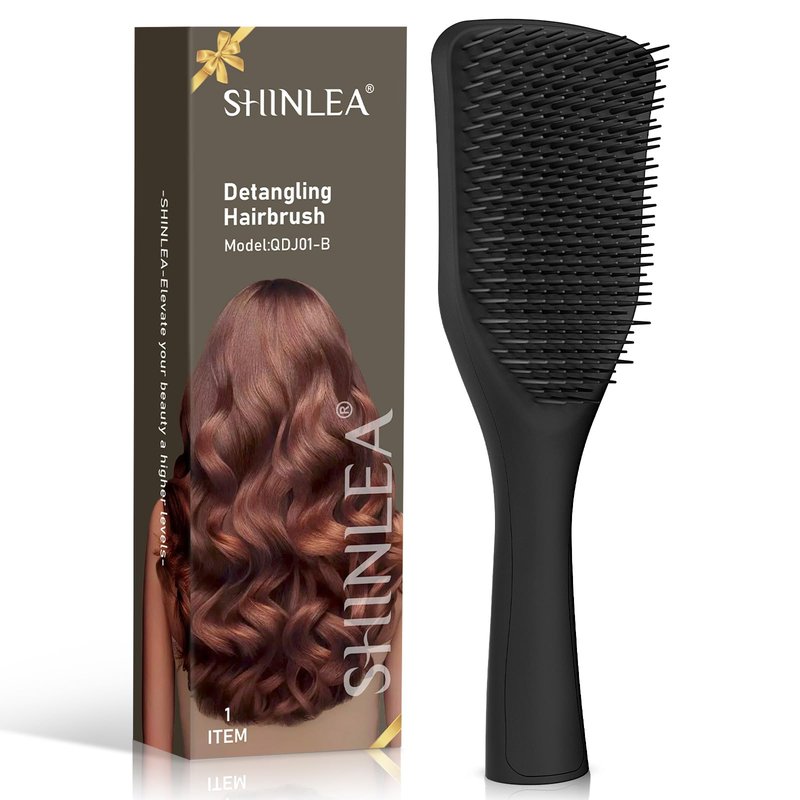 SHINLEA Detangler Hair Brush for Wet & Dry Hair, No Tangle Wave-shaped Soft Bristle Hairbrush for Reduces Breakage, Lightweight Travel Brush Detangling All Hair Types, Black
