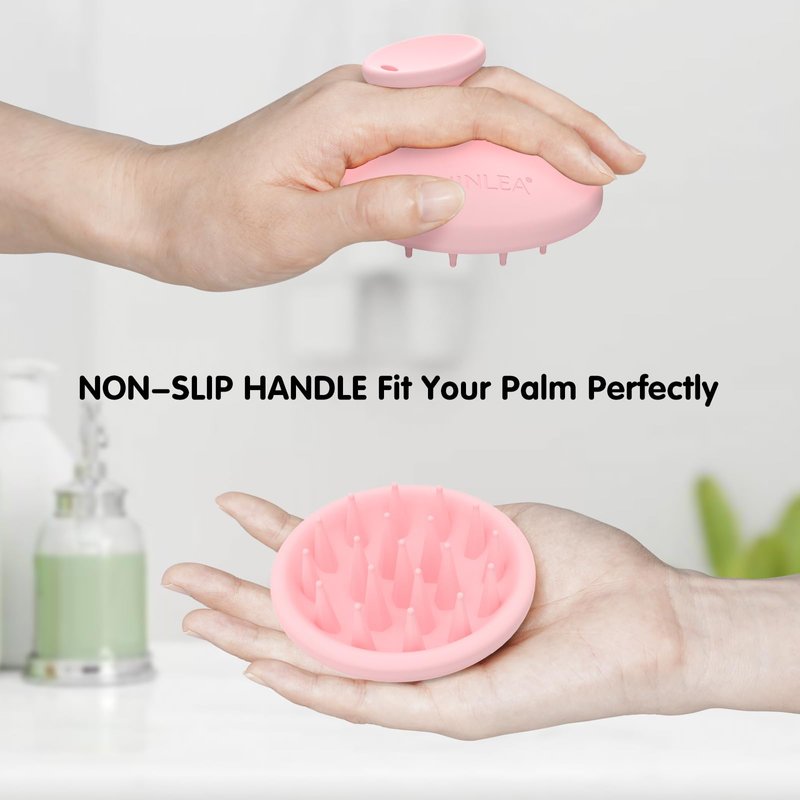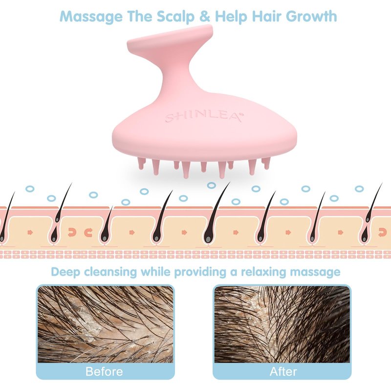 SHINLEA Silicone Scalp Massager Shampoo Brush, Head Scrubber with Soft Bristles for Hair Growth, Deep Clean and Dandruff Removal, Shower Hair Brush Wet & Dry Use, Pink