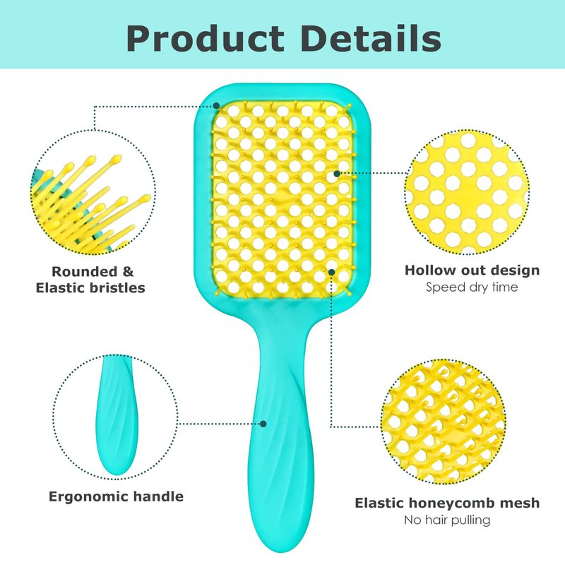 - Effortless Tangle-Free Hair: Strategically arranged high and low bristle combination for effective hair cleaning. The honeycomb elastic mesh design allows the detangler brush to closely conform to the natural curve of the head when brushing hair.