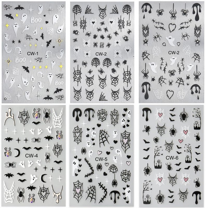 Quantity: 6 Sheets 3D Self-Adhesive Halloween Nail Art Stickers Decals