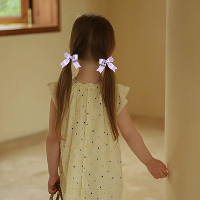 Gift Package- Lovely small ribbon bow hair clips comes as pictured in pairs and available in multi shiny classic colors: glitter red,dark green,shiny purple,light gold/champagne! You are certain to find a color to match any of your sweet girls' outfit!
