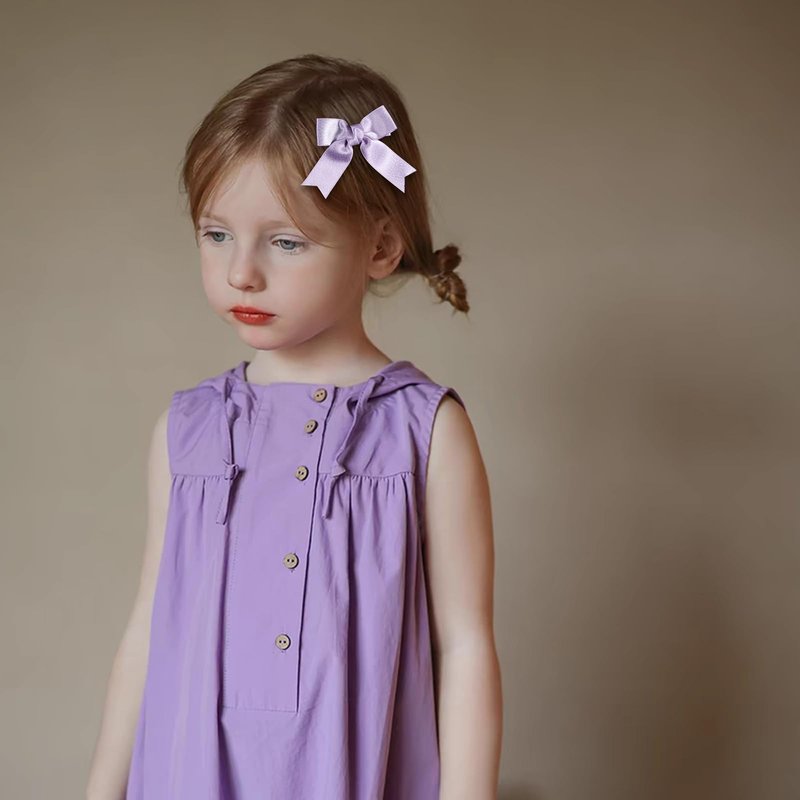 - Perfect Bows Size- Adorable glitter purple ribbon bow approx. 2.8x2.4 inches. So cute and just the right size for baby,toddlers,teens,flower girls,school kids,little ones’ pigtails! great choice for clipping some hair to the side, decorating braids, ponytails and pigtails. she will love the sparkling solid satin silky look!