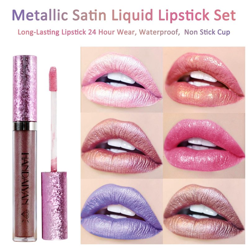 Shiny Metallic Satin Liquid Lipstick, Lipstick for Women Daily Use Moisturizing Lip Gloss, Long-Lasting Lipstick 24 Hour Waterproof Shiny Matte Non Stick Cup Lip Gloss, Colorful Long Wear Lipstick (Set)