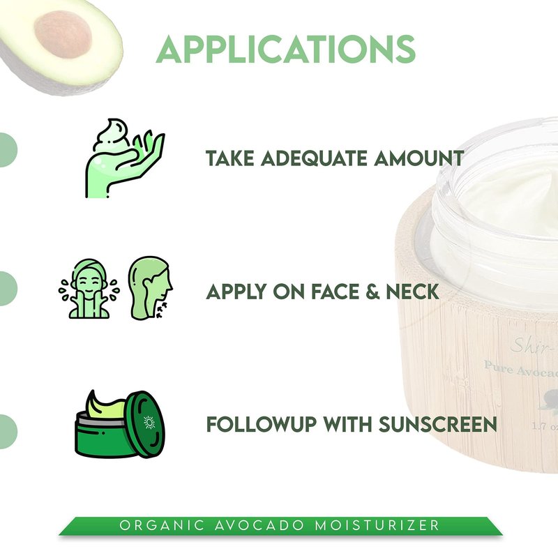 - DRY SKIN IS DONE AWAY Thanks to its amazing avocado extracts, the Shir-Organic Pure Avocado Moisturizer is perfect for people with dry skin. Moisturize your skin now in the best way!