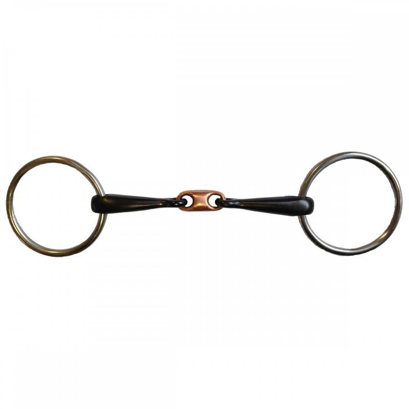 The Shires Copper Lozenge Sweet Iron Snaffle Bit is a training bit made with a sweet iron and copper combination that provides a warmth for the horse which encourages salivation and gives a pleasant taste.
