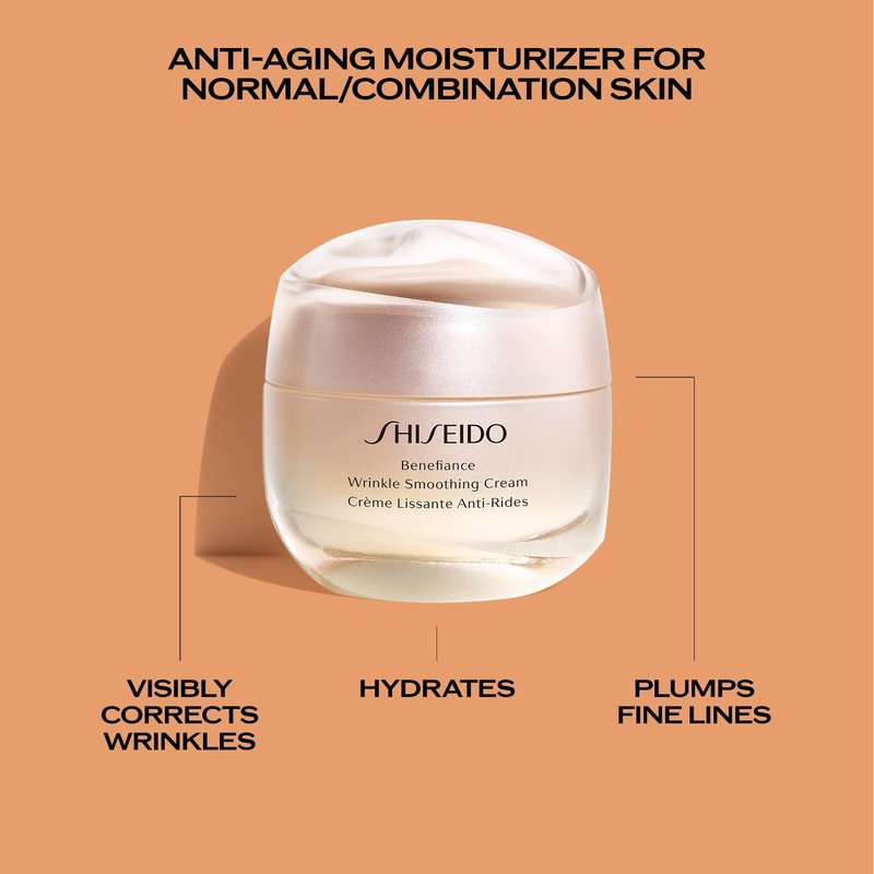 Shiseido Benefiance Wrinkle Smoothing Cream - 50 mL - Anti-Aging Moisturizer for Normal & Combination Skin - Visibly Corrects Wrinkles & Intensely Hydrates - Non-Comedogenic