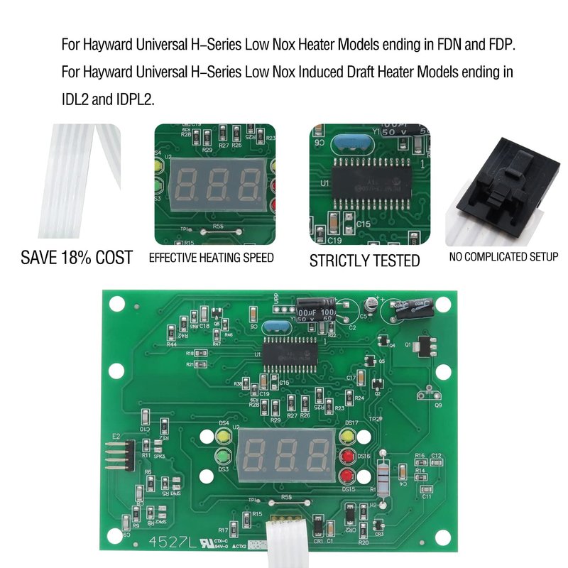 - 【Compatibility】Hayward Display board fit for Hayward low Nox induced draft heater models H200FDN/H250FDN/H300FDN/H350FDN/H400FDN & H200FDP/H250FDP/H300FDP/H350FDP/H400FDP.